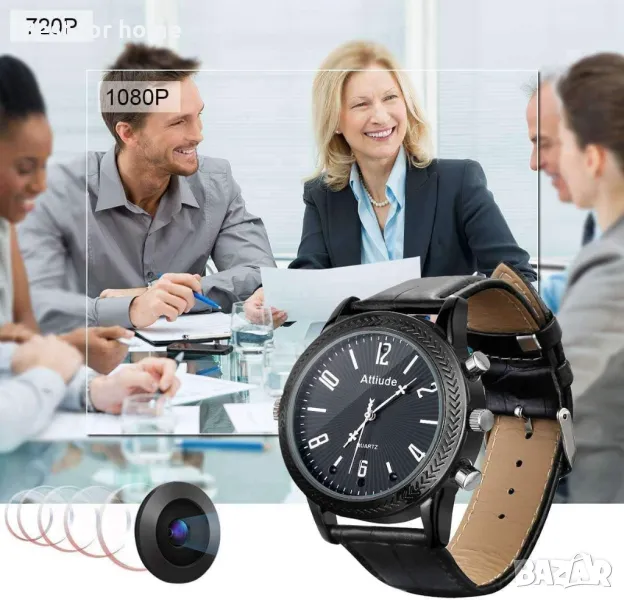 Смарт часовник Menborn, черна кожена каишка, 1080P HD камера, видеозапис с висока разделителна способност, впечатляващ фото режим. Super Stealthy - Тази камера изглежда като мъжка джаджа, което я прави трудна за забелязване. Работи без светлина, така че може да се използва като камера за наблюдение. Вградена 32GB карта с памет - Вградената 32GB карта с памет поддържа запис на видео в цикъл. Могат да се съхраняват над 5 часа HD видео, а батерията издържа за 90 минути запис. Когато SD картата е пълна, последният файл презаписва предишния файлов сегмент и записът продължава. Лесен за използване - Лесна работа с един бутон, записвайте всички действия с едно натискане на бутон. За да гледате видеоклипа, просто го включете в стандартен USB порт на вашия компютър и изтеглете материала. Какво получавате: часовник, USB кабел, ръководство (английски език не е гарантирано)