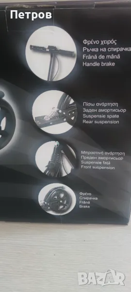 Чисто нова детско-юношеска тротинетка издържа 100 килограма с двоен амортисьор преден и заден, ръчна спирачка, стойка за изправено състояние, динамично кормило лесна е за сгъване и пренасяне. Размери 55.5см/85-100см.