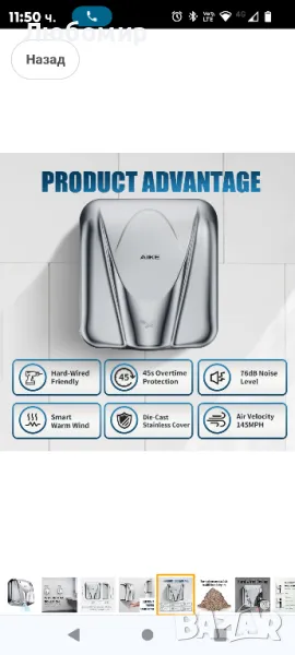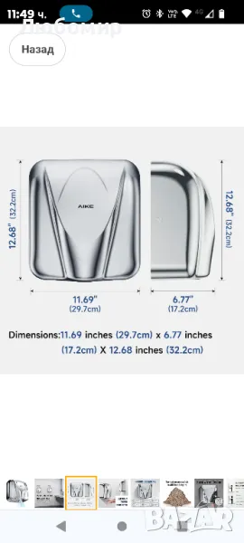 AIKE AK2812 Сешоар за ръце от неръждаема стомана, Търговски сешоар за ръце с тежък режим на работа, подходящ за случаи с голям трафик, като големи търговски центрове и големи транспортни възли.Корпус #304 от неръждаема стомана от една част, здрав и издръжлив, особено подходящ за места с голям пътникопоток като офиси, магазини, ресторанти, образование, развлечения, спирки и здравни индустрии и др.Класическият кръгъл въздушен отвор е силно разпознаваем и прави въздушния поток по-концентриран. В комбинация с 24 000 RPM мощен мотор, въздушният поток е супер бърз, отнема около 8-12 секунди, за да изсушите ръцете си.Интелигентна отоплителна система: Когато температурата на околната среда е под 25°C, нагревателят се включва, в противен случай нагревателят се изключва. Температурата на нагряване се поддържа от 20 ℃ до 40 ℃, което няма да нарани ръцете на децата. Спестява до 80% повече енергия от традиционните сешоари за ръце.Британско номинално напрежение и кабел с 3-пинов щепсел. Можете директно да поставите щепсела в контакта за употреба или да оставите професионален електротехник да премахне захранващия кабел и щепсела.