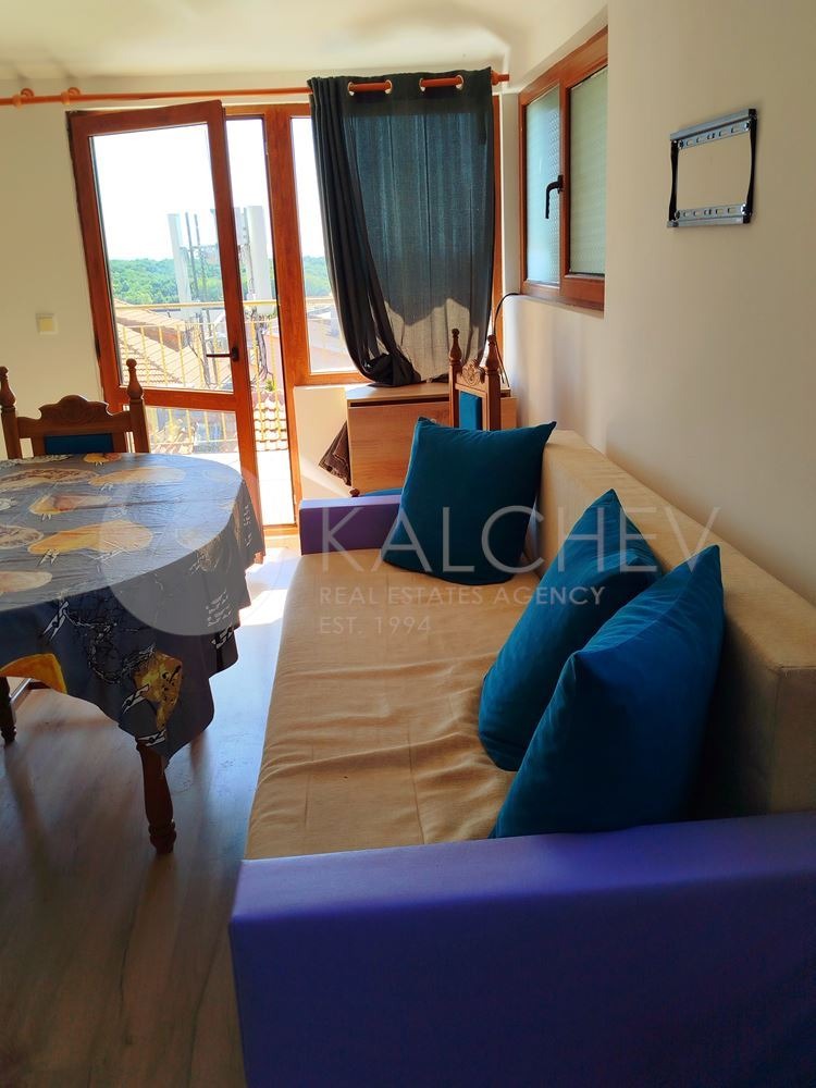 Двустаен апартамент в Кранево с панорамна гледка към морето, полета и планини.