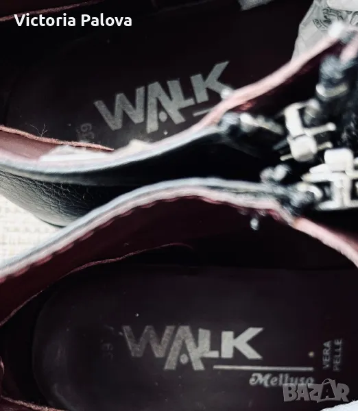 Избирайки Walk by Melluso вие избирате най-доброто за краката си - това е максимален комфорт и ненадминато качество. Размер 39 , уголемен, отговаря и на 39,5. От двете страни има ципове за удобство, мека дишаща кожа , ергономична латексова подметка, ток 2,5 см. Walk е създаден за тези, които са в движение, идеално съчетава лекота и комфорт , в същото време и елегантност и качество, характерни за made in Italy .