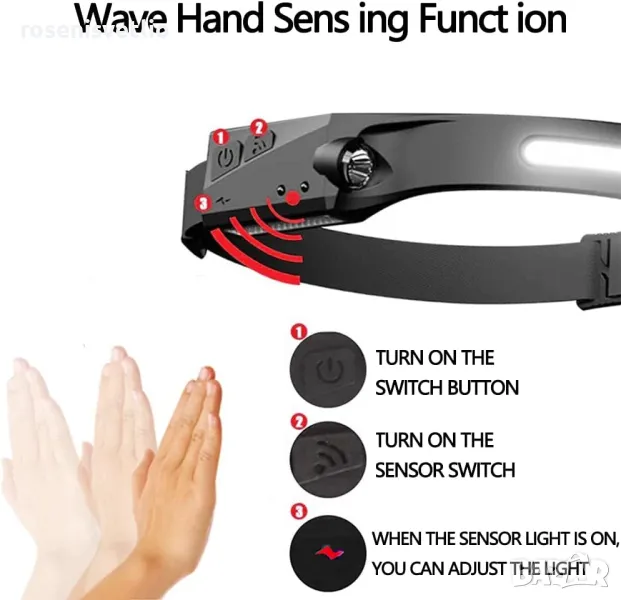 Професионален челник с сензор, LED STOP, Фенер за глава, Акумулаторен