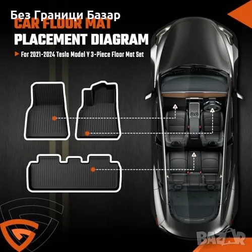 Нови Tesla Model Y 2021-2024 гумени стелки - водоустойчиви, издръжливи