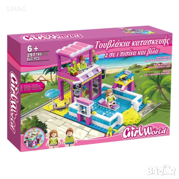 Комплект пластмасови части Конструктор Вила с плувен басейн и 2 фигурки (297 части) S_1220774 → Обява 49269579