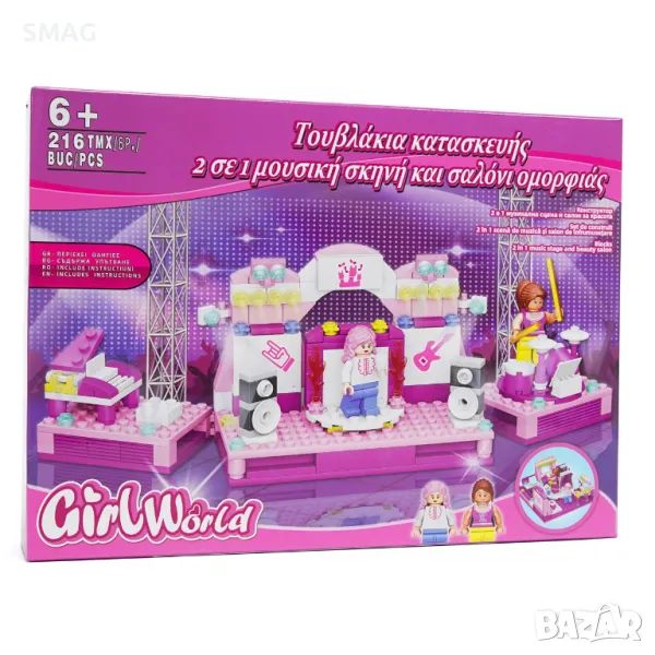 Комплект Конструктор с 2 фигурки 2в1 Салон за красота и музикална сцена (216 части) S_1220772 → Обява 49269608