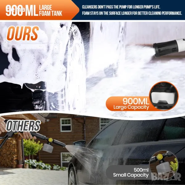 сайдинг на къщи. Вградената система за пълно спиране (TSS) повишава безопасността, като изключва двигателя, когато спусъкът бъде освободен, докато защитата от прегряване и блокировката за деца добавят допълнителна сигурност.