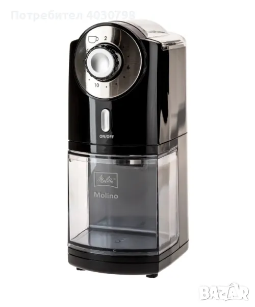 Melitta Molino®: Индивидуални настройки за до 17 нива на смилане Кафемелачката Melitta Molino® ви позволява да избирате от до 17 нива на смилане на кафе на зърна според предпочитанията си. От 1 (много фин) до 17 (много груб). Благодарение на това можете да мелите кафе на зърна за всеки повод - от фино смляно кафе за ароматно еспресо до едро смляно кафе за филтрирано кафе. Настройка на количеството кафе за 2-14 чаши Можете лесно да изберете правилното количество кафе за 2-14 чаши с помощта на въртящото се колело за настройка на броя на чашите. След това Melitta Molino® смила избраното количество кафе. Максимален обем от 200 g кафе на зърна Контейнерът за кафе на зърна Melitta® Molino е снабден с подвижен капак и може лесно да се напълни с до 200 g кафе на зърна. Професионална конусовидна мелница със свалящ се пръстен за мелене Този тип кафемелачка в момента се използва и от специалистите по кафе. Чрез регулиране на разстоянието между двата шлифовъчни диска се получава желаната гранулация. Дизайнът и мощният мотор гарантират отлични резултати от смилане за кратко време. Автоматично спиране Започнете смилането с натискане на бутона. След като смилането приключи, Melitta Molino® спира автоматично. Лесно почистване Благодарение на отделните части, които могат да се свалят (подвижен пръстен за мелене, подвижен контейнер за кафе на зърна и подвижен капак за контейнера за кафе на зърна), кафемелачката Melitta® Molino може да се почиства бързо и лесно след употреба. Технически параметри на черната кафемелачка Melitta Molino®: тип: автоматичен материал: стомана цвят: черен мощност: 100 W нето тегло: 1,61 кг бруто тегло: 1,91 кг размери на продукта: 9,5 х 25,5 см (ШхВ) размери на опаковката: 15,2 х 21,8 х 29,5 см