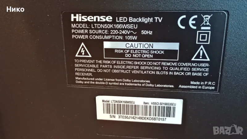 телевизор Hisense LED Backlight TV;  модел LTDN50K166WSEU → Обява 49270771