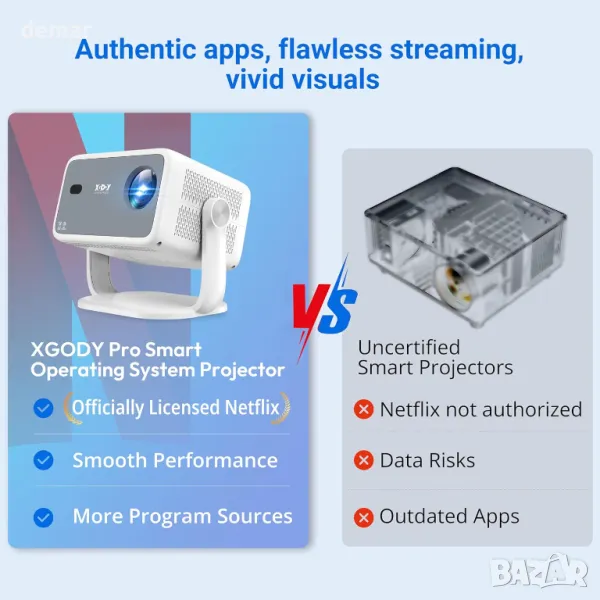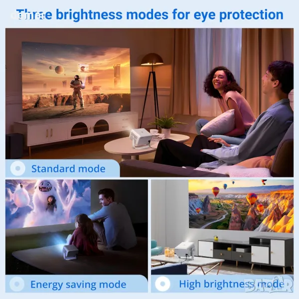 Xgody 4К интелигентен проектор, Регулируеми нива на яркост, Netflix