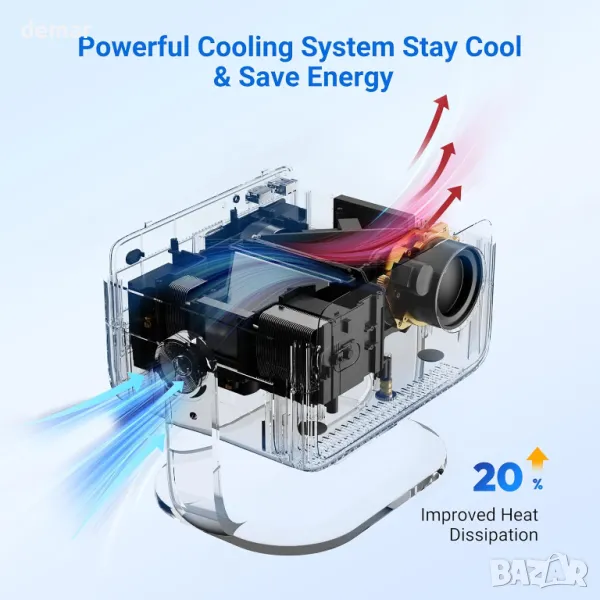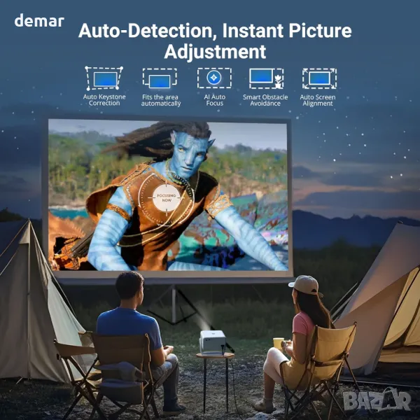 проектор поддържа пълна HD 1080P разделителна способност с яркост 300 ANSI и контрастно съотношение 2000:1 за живи, резки изображения. Неговото съотношение на фокусиране 1,16:1 позволява проекция на голям екран в малки пространства, докато автофокусът и автоматичната корекция гарантират перфектно подравнено изображение. Сертифициран за Netflix, той осигурява стабилно поточно предаване без прекъсване с интелигентно избягване на препятствия и автоматично регулиране на екрана за безпроблемна употреба. Три режима на яркост се грижат за различни условия на осветление, като същевременно намаляват синята светлина за комфорт на очите. Интегрирането на Google Assistant позволява гласово управление със свободни ръце, а стойка, въртяща се на 180°, предлага гъвкави ъгли на гледане, което я прави идеална за домашно кино или спални.