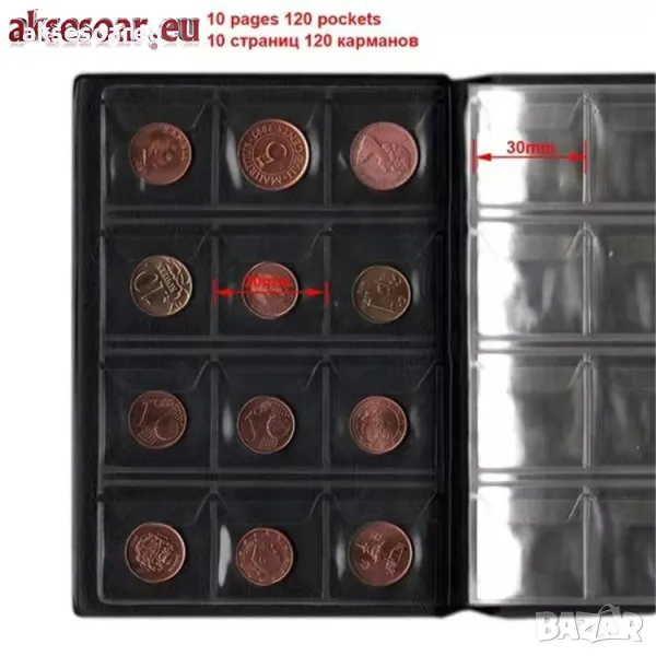Подходящ за монети с диаметър 28 mm(Размера на гнездата е 30 мм)