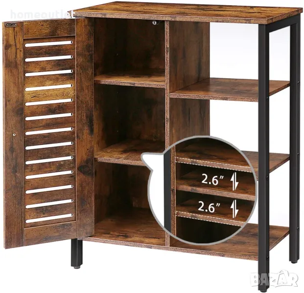 Шкафът за съхранение е снабден с 2 скрити регулируеми рафта, 3 отворени рафта и просторен плот, които предлагат допълнителни възможности за съхранение във всяко пространство.