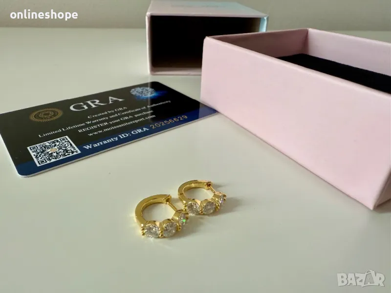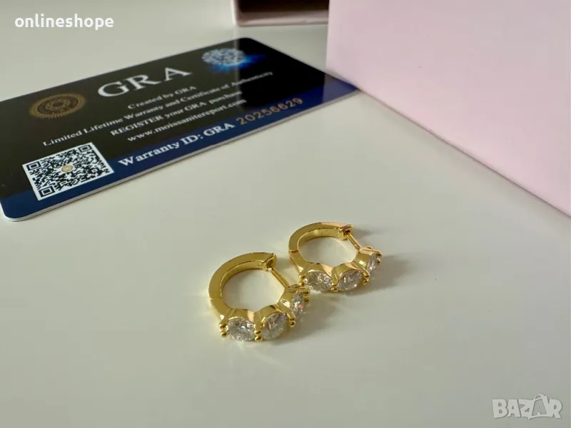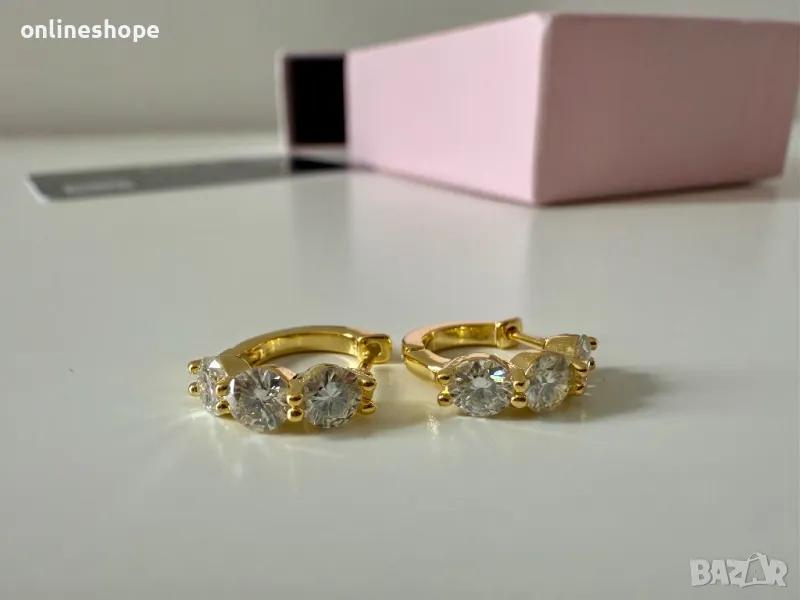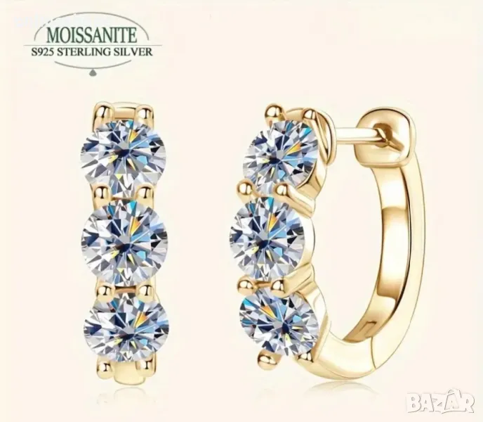 Елегантни и изискани обеци, изработени от висококачествено сребро 925 с 18K златно покритие. Всяка обеца е инкрустирана с мойсанит 0.9 карата, който осигурява изключителен блясък и чистота, съперничещи на диаманта.