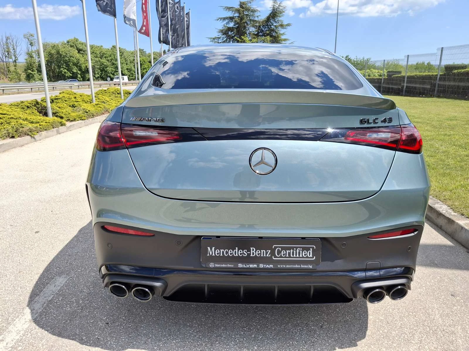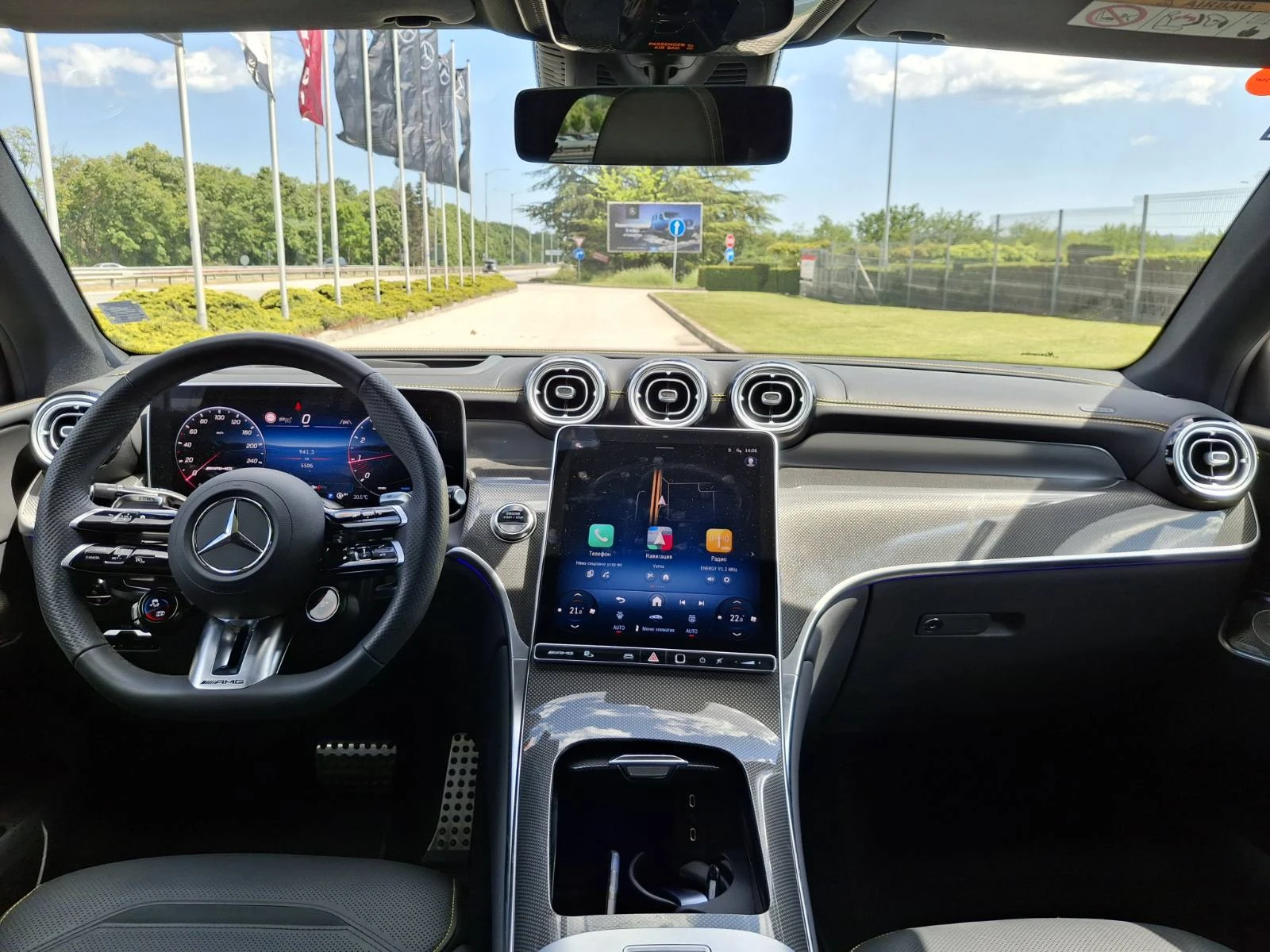 Боя: 188 Verde сребрист металик Тапицерия: 861 ест. кожа напа, черна с контрастен шев в жълто ОБОРУДВАНЕ НА АВТОМОБИЛА 16U Apple CarPlay 17U Android Auto 207 Активен асистент за дистанция DISTRONIC 241 Ел. регулируема предна лява седалка с памет 242 Ел. регулируема предна дясна седалка с памет 243 Активен асистент за лентата за движение 258 Активен спирачен асистент 287 EASY-PACK сгъваеми облегалки на задните седалки 30P Пакет " Отделения за вещи" 310 Двойна поставка за бутилки и чаши 319 Арки на калниците в цвета на купето 325 Централно разположена въздушна възглавница 32U Персонализация на звука 339 AMG Real Performance Sound 33U Дистанционни услуги PLUS 345 Чистачки със сензор за дъжд 351 Mercedes-Benz система за аварийни повиквания 355 MBUX с разширени функции 36P Пакет " AMG оптика" 401 Климатизирани предни седалки 421 AMG SPEEDSHIFT MCT 9G 459 AMG RIDE CONTROL окачване 475 Система за следене налягането в гумите 528 MBUX мултимедийна система 537 Цифрово радио 5U6 AMG специфична радисторна решетка, затъмнена 670 Функция остатъчна топлина (REST) 776 Уширения на калниците за AMG джанти 795 Централна конзола в изп. декоративни елементи с метализирана структура 79B Подготовка за дигитално радио 7U3 Спортни седалки 7U8 Моделен надпис на задния капак и калниците в черен хром 824 Допълнителни компоненти за държави със студен климат 846 Странични степенки с алуминиева оптика и гумени бутони 871 HANDS-FREE ACCESS 872 Ел. отопление на задните седалки 876 Пакет " Интериорно осветление" 889 KEYLESS-GO 88B Пасивно напомняне за хора в автомобила 890 Автоматичен капак на багажника (отваряне/затваряне) 893 KEYLESS-GO Start/Stop 894 Амбиентно осветление Plus 896 Подготовка за цифров ключ в смартфона B01 Технология 48 V B59 Програми за шофиране DYNAMIC SELECT D04 Удължена гаранция (2+3 години или 200 000 км) H64 Декоративни елементи с метализирана структура P60 Пакет " AMG нощ" , екстериор PAZ Пакет " AMG нощ II" PDD Пакет " Premium Plus" 14U Пакет " Смартфон интеграция" 20U Подготовка за цифрово предаване на ключа 234 Асистент за мъртвия ъгъл 275 Пакет " Мемори" 321 Скенер за пръстов отпечатък 413 Панорамен електрически люк 444 Head-up Display 464 Дисплей за водача 49U Подготовка за MBUX Entertainment Plus 581 Автоматична климатична инсталация THERMOTRONIC 77B MBUX Интериорен асистент 810 Озвучителна система Burmester® 3D surround sound 840 Подсилено затъмнени тонирани задни стъкла 851 Топло- и шумоизолационно акустично стъкло 868 Централен дисплей 891 Амбиентно интериорно осветление 897 Безжично зареждане за мобилни устройства 942 Пакет " Комфортно товарно отделение" P17 Пакет " KEYLESS-GO комфорт" P47 Пакет " Паркиране" с камера 360° 04U Прозрачен преден капак 235 PARKTRONIC вкл. Активен асистент при паркиране 501 360° камера P49 Пакет " Огледала" 252 Централно огледало с автоматично затъмняване 500 Ел. сгъваеми външни огледала 587 Амбиентно осветление с проектиране логото на марката PAX DIGITAL LIGHT с проекционна функция 318 DIGITAL LIGHT 628 Асистент за адаптивни дълги светлини PLUS PBG MBUX Навигация Premium 01U Подготовка за Навигационни услуги 365 Навигация от твърд диск 367 Подготовка за Live Traffic Information 382 Комуникационен модул за услугите Дигитални екстри (5G вариант) PTF Mercedes-AMG интериор 901 Пакет „ Хром“ , интериор L6J AMG Performance волан в кожа напа U26 Стелки AMG U34 Табло и горни панели на вратите в кожа ARTICO с напа оптика U45 AMG лайсни на праговете със светещ надпис " AMG" и сменяема вложка U88 AMG бутони на волана PUF Mercedes-AMG екстериор 201 Завиваща задна ос 772 AMG оптичен пакет 900 Пакет " Хром" B06 Спирачни апарати, лакирани в сребристо RVN Алуминиеви джанти AMG 20'' (50, 8 см), дизайн 10 двойни спи
