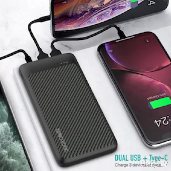 - Двоен вход, двоен изход (Quick Charge 3.0+Power Delivery 3.0) 18W.