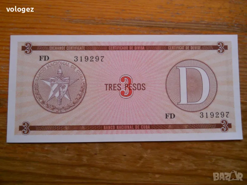 4. 3 песос 1985 г. Куба (за туристи) - 5,11 / 10 лв (UNC)