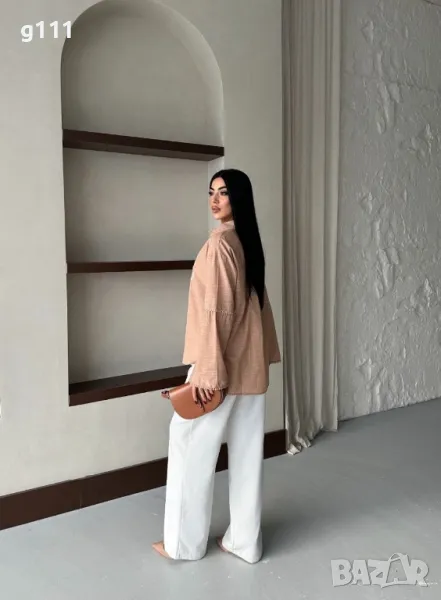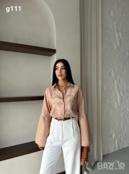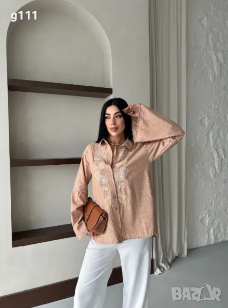 Памучна риза с бродерия и ефектен ръкав