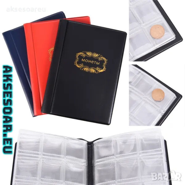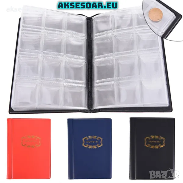 - 10 страници със 120 броя джобчета за събиране на монети, албум, книга,