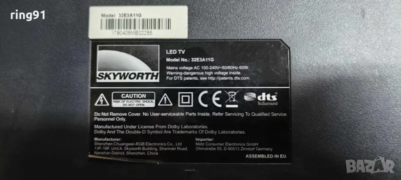 Main board - 5800-A3M11G-0P10 VER00.06 TV Skyworth 32E3A11G → Обява 49272254