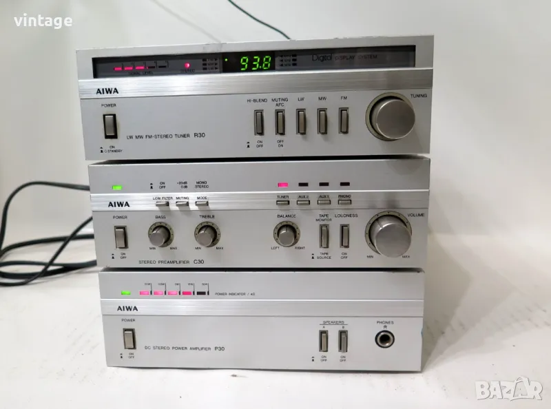 Hi-Fi мини система, състои се от предусилвател Aiwa SA-C30, крайно стъпало Aiwa SA-P30 и тунер Aiwa ST-R30. Отлични технически, много добър външен вид. Приложените снимки и видео са реални!