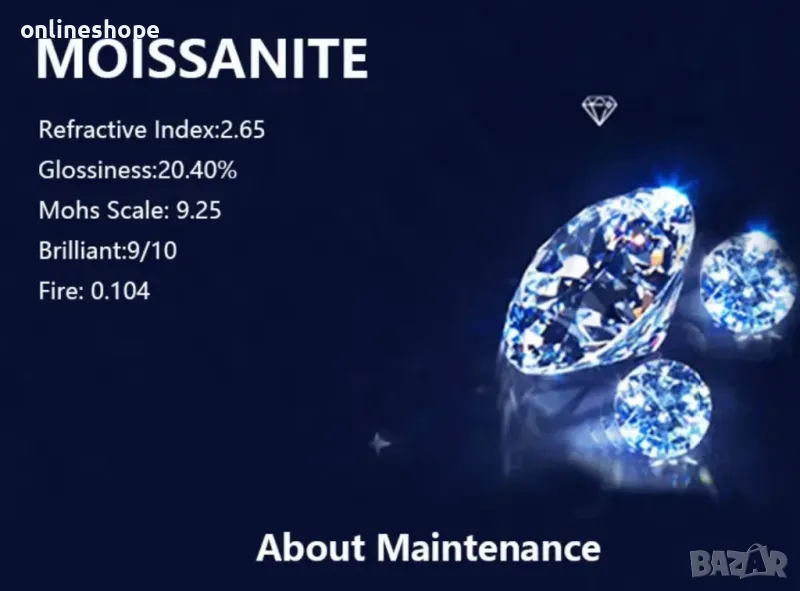 • Камък: Мойсанит 1ct – сертифициран, с висока чистота и изключителен блясък