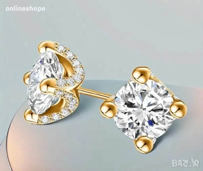 - Сребърни обеци с мойсанит и с 18к златно покритие - 45€