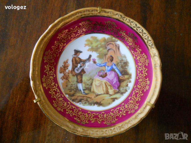 Порцеланови чинийки-пано Limoges, изобразяващи романтична сцена. Произведени са във Франция, в района на Лимож, известен център за производство на порцелан от 18-ти век.