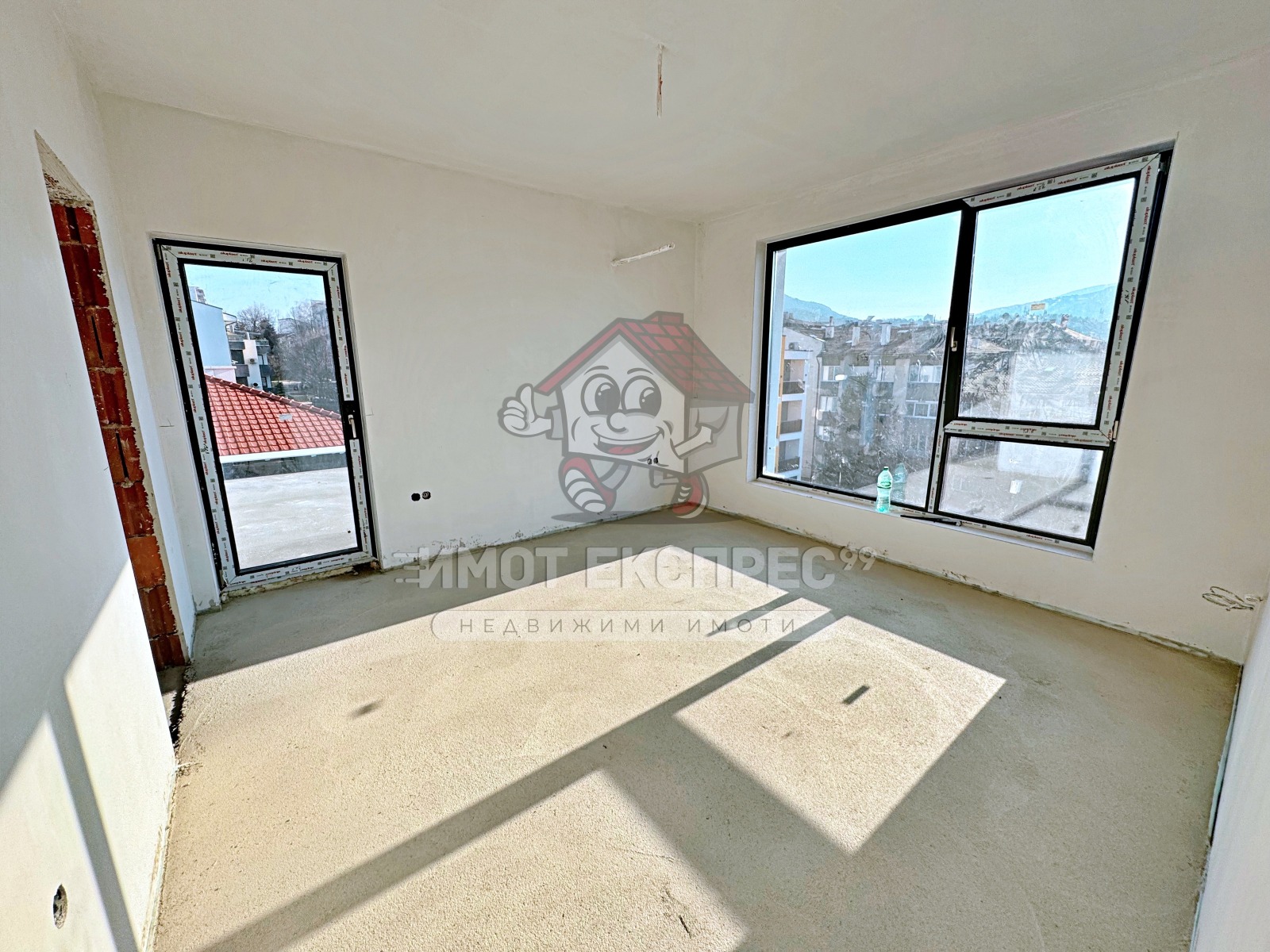 Тристаен апартамент, с чиста площ 121кв.м /с общи части 137.50кв.м/, състоящ се от дневна с кухня, 2 спални, дрешник, 2 бани и тоалетни, антре, коридор, килер и 2 тераси, едната от които е голяма тераса, с панорамна гледка към града и планината. Чистата площ на апартамента, без голямата тераса е 87.80кв.м. От всички стаи, също се открива панорамна гледка към града и планината.