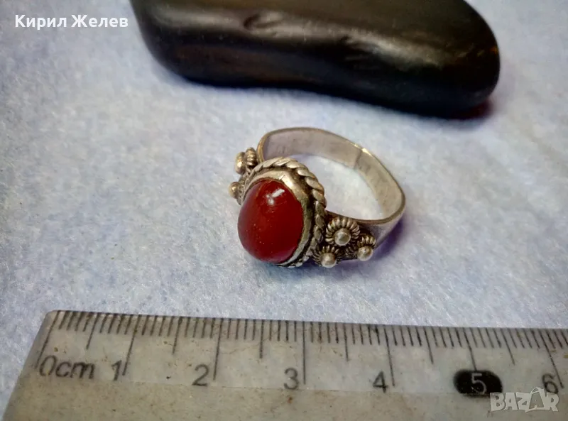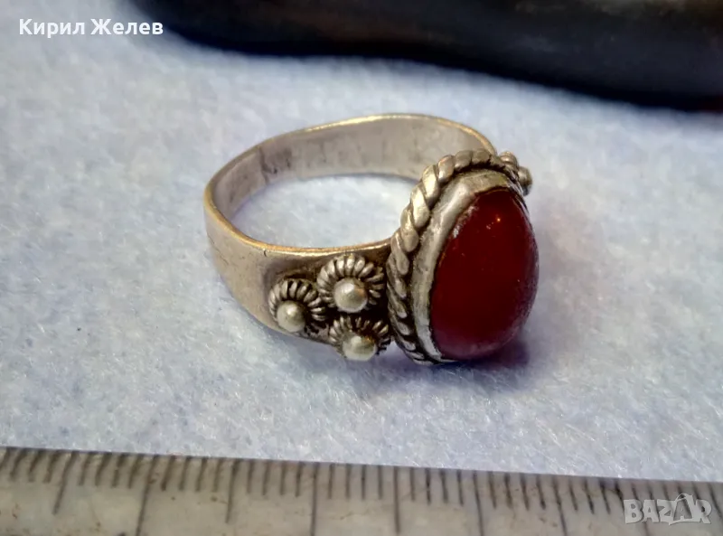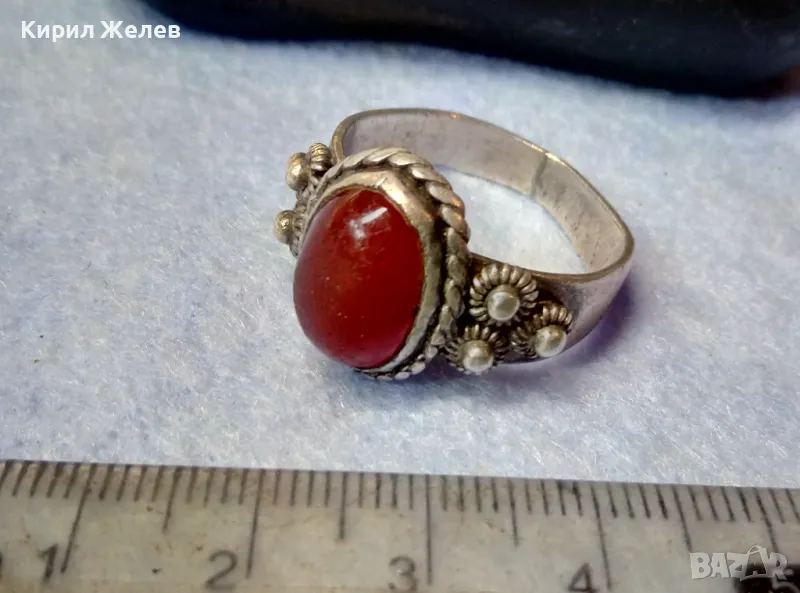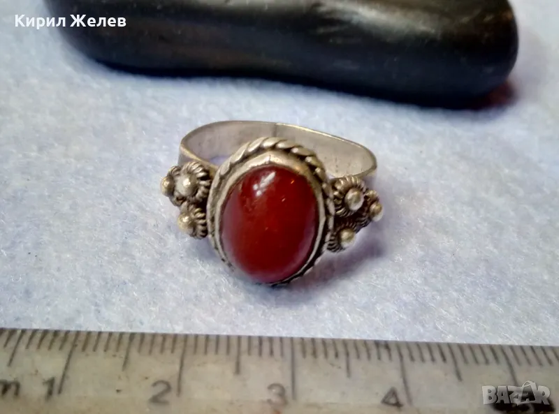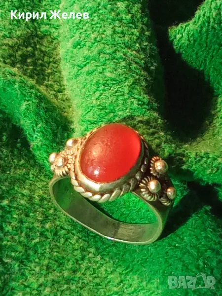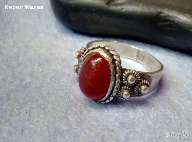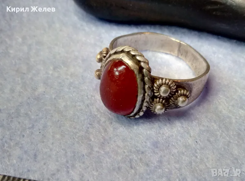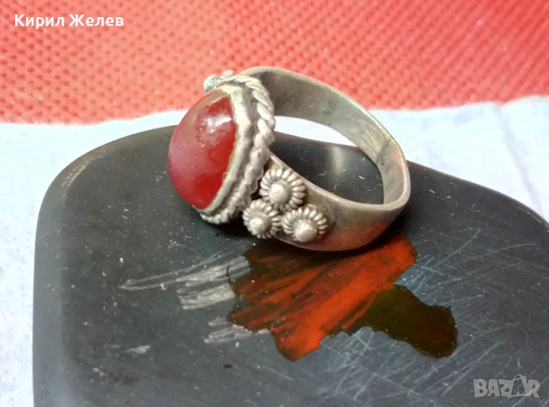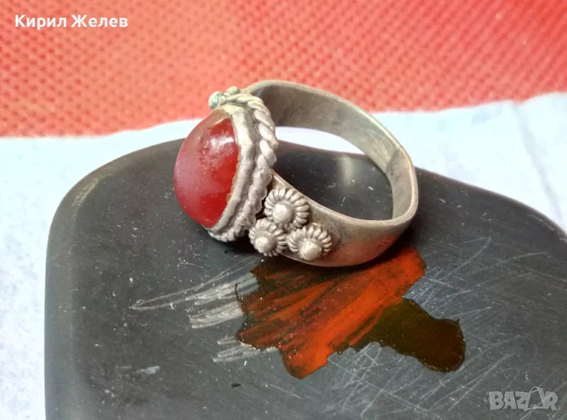 Старинен СКЪПОЦЕНЕН ОСМАНСКИ СРЕБЪРЕН ПРЪСТЕН СРЕБРО ВИСОКА ПРОБА с РЪЧНО ШЛИФОВАН КАРНЕОЛ 47482
