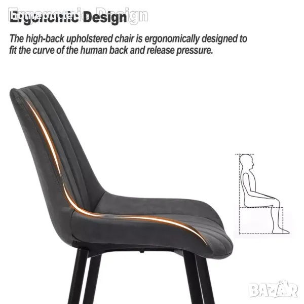 Тапициран с мека, разкошна материя, столът разполага с омекотена седалка и извита облегалка за ненадминат комфорт по време на хранене.