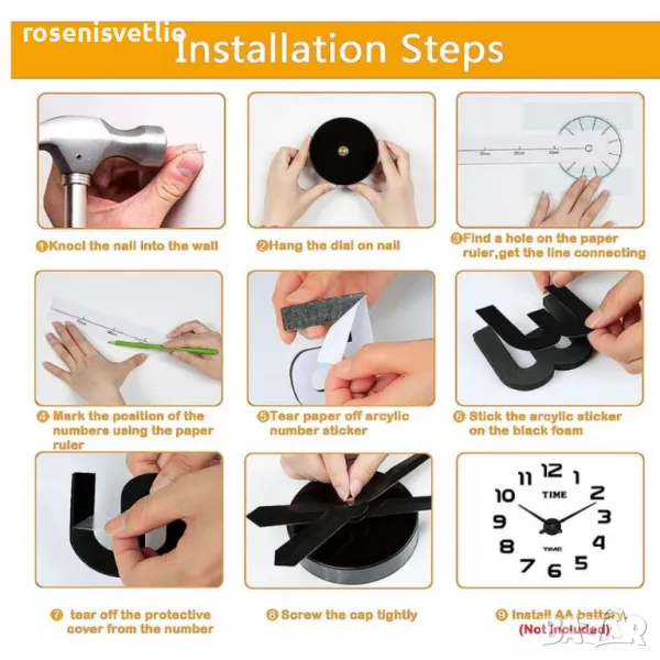 Един от най-популярните видове часовници са стенните часовници, при които всяка цифра се залепя директно към стената. Има много видове, размери и цветове на тези часовници с едно общо нещо – когато го монтирате на стената, трябва да го направите сами. Ако имате голяма празна стена и искате да я запълните с практична декорация, тогава лепящият часовник е точният за вас.