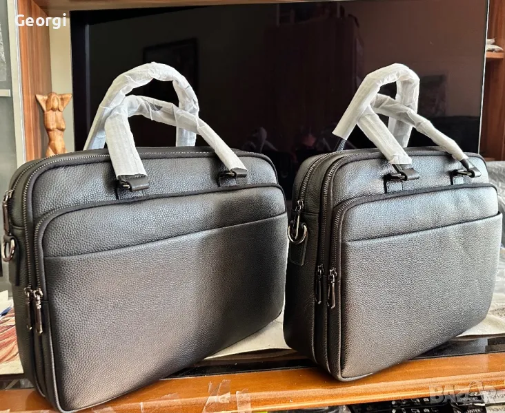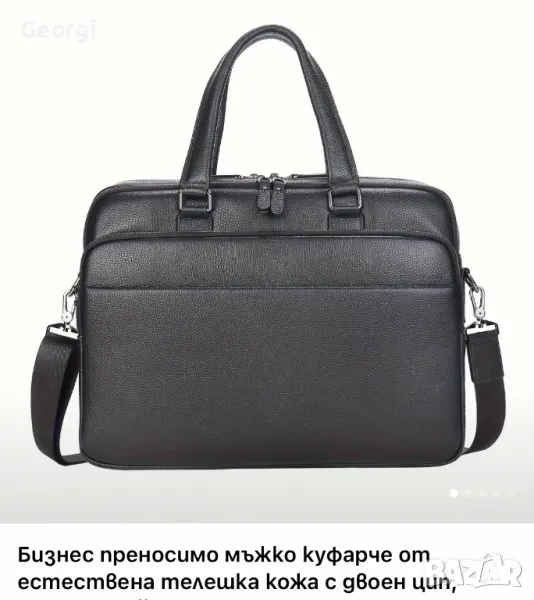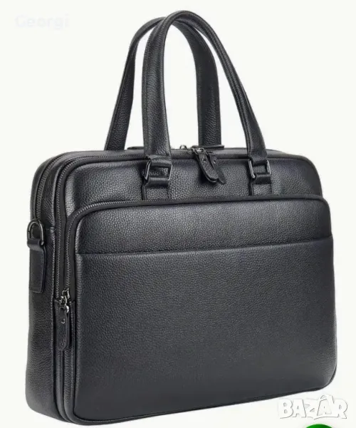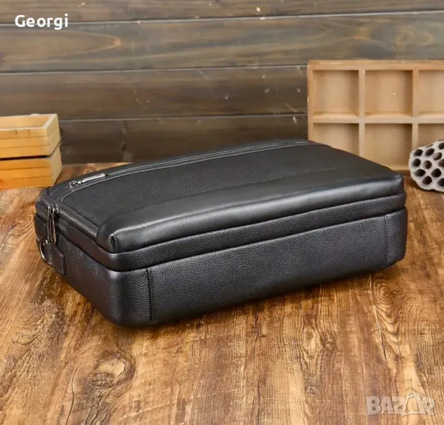 Ултра-Елегантна, Функционална и Стилна мъжка бизнес чанта (куфарче за лаптоп 15”) с неповторим и ергономичен дизайн ! Най-висок клас Черна естествена телешка кожа 5+!!