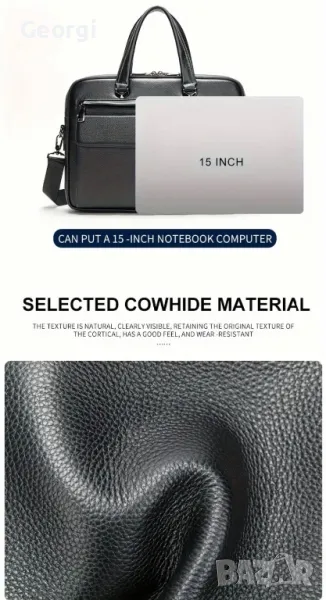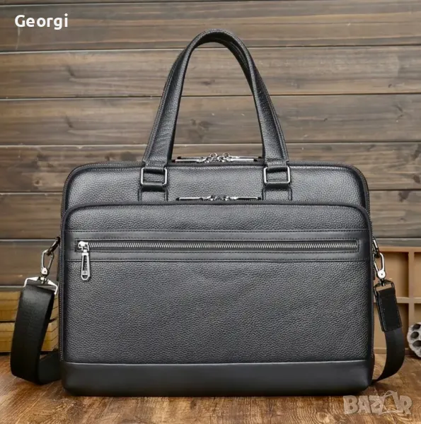 Мъжка премиум/елегантна кожена бизнес чанта /Куфарче за лаптоп 15" от естествена кожа!