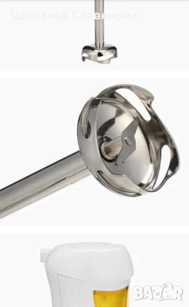 Включва мерителна чашка от 500 ml. Прът с байонетно затваряне, много лесен за сваляне и поставяне. Чаша и пръчка, подходящи за съдомиялна машина, напълно без BPA.