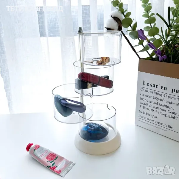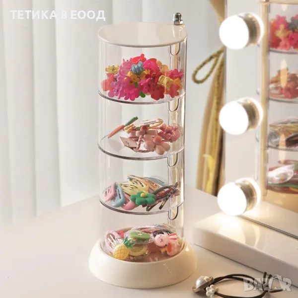 4-слоен прозрачен органайзер за бижута, въртящ се на 360°, малка сладка акрилна кутия за бижута: за щипка за коса, ластици за коса, обеци, колие, гривна, пръстен, държач за аксесоари за коса за момичета.