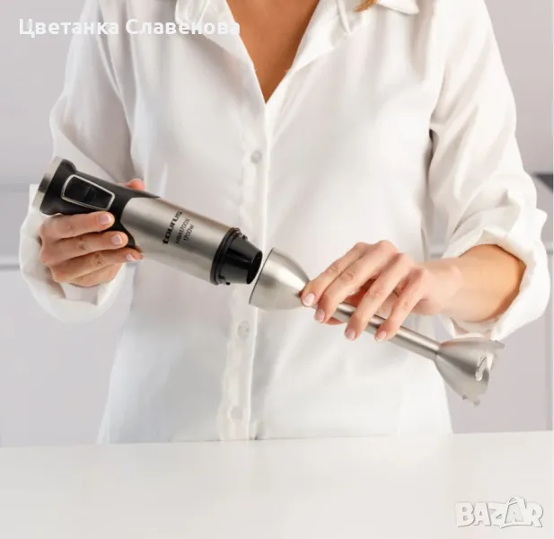 Ръчният пасатор с мощност 1700 W съчетава мощност, прогресивен регулатор на скоростта и функция Turbo, за да се адаптира към всяка рецепта. С остриета от неръждаема стомана, ергономичен дизайн с мека на допир ръкохватка и система против пръски, той е идеален за смесване и нарязване. Включва 1L мерителна чаша, емулгираща бъркалка и 600 ml чопър, идеален за разнообразни рецепти. Неговите разглобяеми аксесоари без BPA и подходящи за съдомиялна машина осигуряват комфорт, безопасност и лесна употреба.