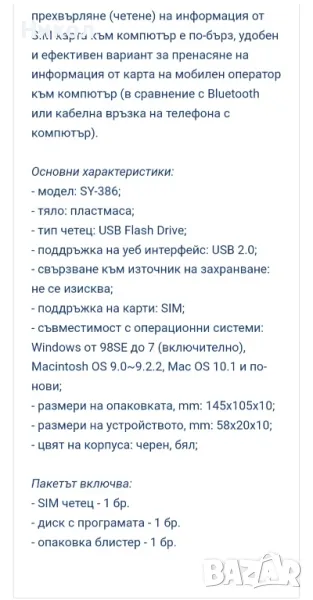 Четец на сим карти SY-386 → Обява 49274593