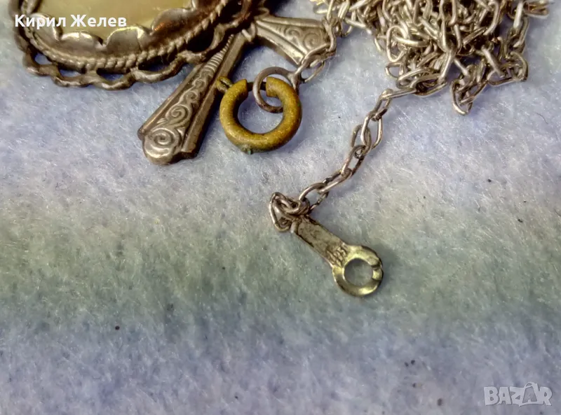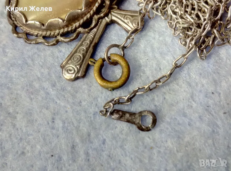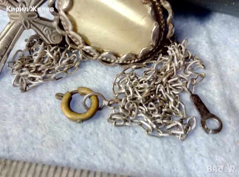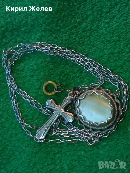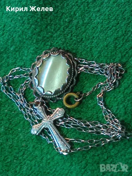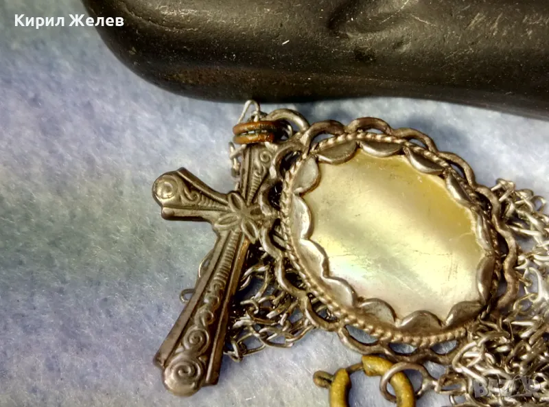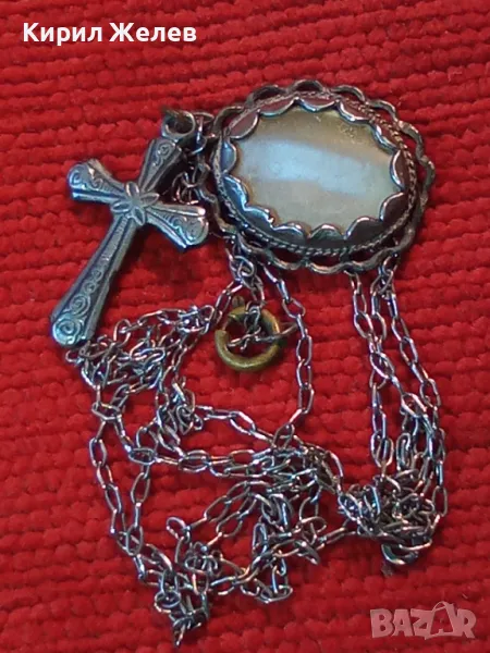 Старинно СРЕБЪРНО КОЛИЕ СРЕБЪРЕН КРЪСТ и СЕДЕФЕН СРЕБЪРЕН ПЕНДАНТ СРЕБРО 925 ВЕРИЖКА 950 ПРОБА 49838