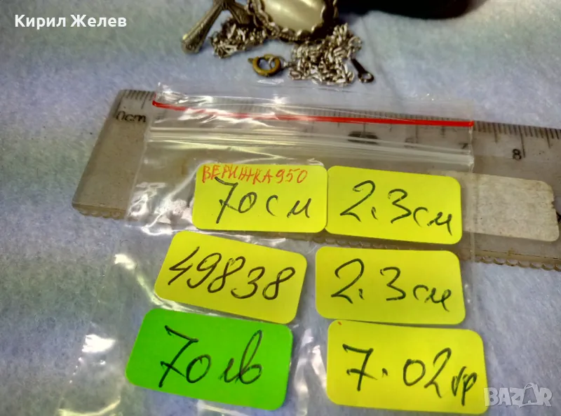 ВСИЧКО е СРЕБРО ВИСОКА ПРОБА РЪЧНА РЕТРО ИЗРАБОТКА, САМО ЗАКОПЧАЛКАТА на СИНДЖИРЧЕТО и ХАЛКИЧКАТА към КРЪСТЧЕТО са от БРОНЗ! / Пускам голяма СЕРИЯ от майсторска ръчна изработка старинни и нови СРЕБЪРНИ БИЖУТА - пръстени, обеци, медальони, гривни, ланци, колиета, брошки - някои са инкрустирани със скъпоценни или полускъпоценни камъни. Всичките са ТЕСТВАНИ ПРОФЕСИОНАЛНО върху лидийски камък с пробер - киселина за сребро, като особено по-старите, ръчно изработени и без маркировка които са, е заснето и резултата на камъка - яркочервеният цвят при натъркване и капване на киселината показва, че са от масивно СРЕБРО ВИСОКА ПРОБА. Има и накити от САЧАН /нископробна сребърна сплав, с която са работели старите майстори - куюмджии от периода на ВЪЗРАЖДАНЕТО и края на 19-ти век/, мед, бронз и благородна стомана с позлата или посребряване. Снимките ги ОНАГЛЕДЯВАТ! Имам НАД 27000 обяви в профила си - За ВСЕКИ по НЕЩО...! Изпращам по Еконт или Спиди с опция Преглед/Тест и отстъпка-транспорт.