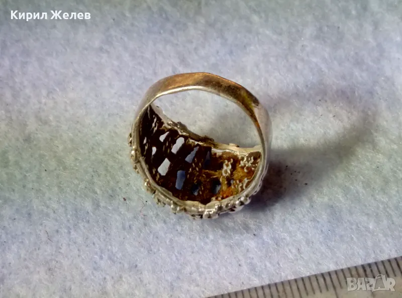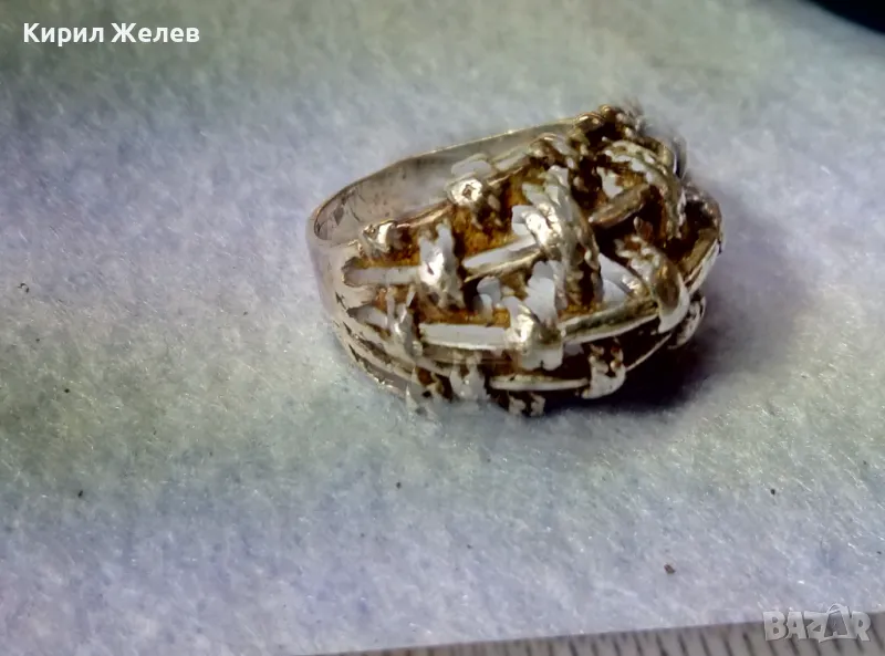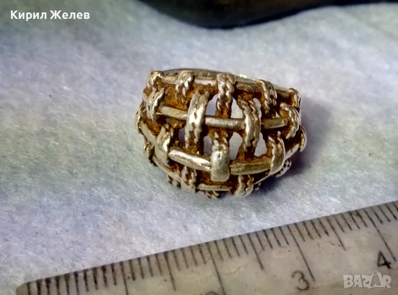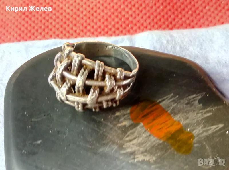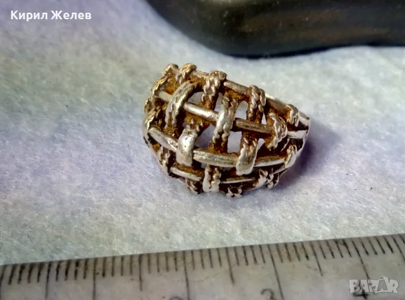 СТАР АЖУРЕН СРЕБЪРЕН ПРЪСТЕН СРЕБРО ВИСОКА ПРОБА с ИНИЦИАЛИ на МАЙСТОРА БП РЪЧНА РЕТРО РАБОТА 49966