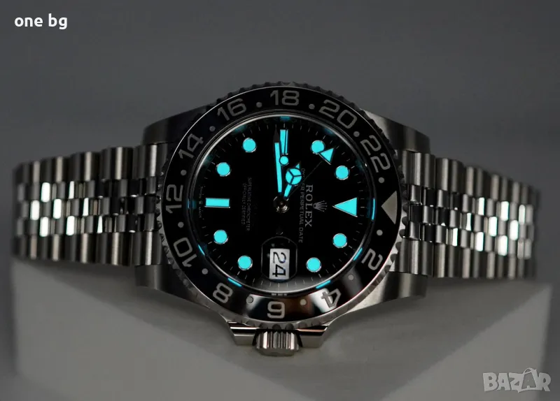 ФУНКЦИИ: Час, дата, GMT (второ време), централен секундарник, много силно луминесцентни стрелки и часови маркери от фосфор които светят нощно време в тъмното
