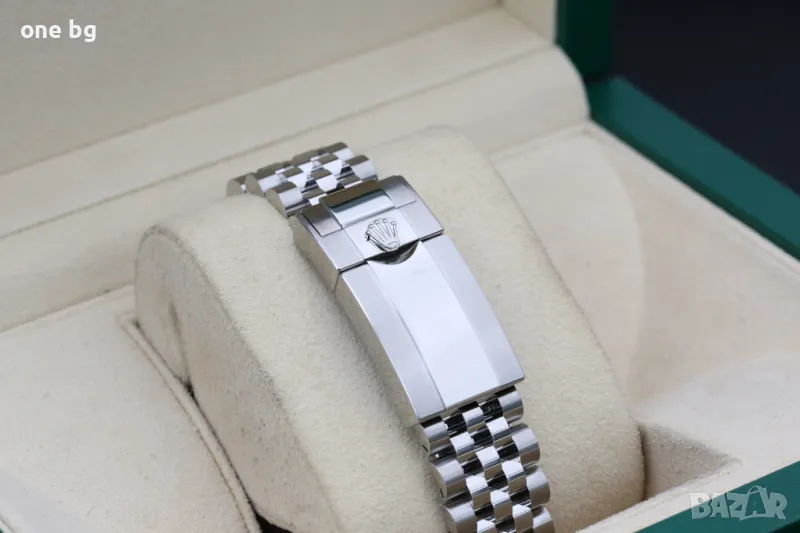 Стъкло: Недраскаем сапфир-кристал с анти рефлекс и лупа за датата. Гравирана с лазер миниатюрна Ролекс коронка на 6 часа