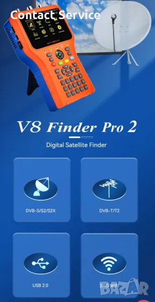 Уреда измерва сателитен,цифров,аналогов сигнал и други.Подходящ за измерване на сигнал на камери. Показва картина. Може да се ползва както за уред така и за реална телевизия.Намира широко приложение и при шофиорите който искат да глдат телевизия на всяко място.Gtmedia V8 Finder PRO 2 Satellite Finder ATSC-C Детектор за цифров сателитен сигнал - оранжев, ЕС щепсел.GTMEDIA V8 Finder Pro2 детектор за сателитен сигнал, 4,3-инчов HD дисплей, DVB-S2X/S2/S/T2/T/C стандартна поддръжка, EU Plug захранване.Компактен и преносим дизайн : GTMEDIA V8 Finder Pro2 е лек и лесен за носене, което го прави идеален за сателитни инсталации в движение и проверки на сигнала.Дисплей с висока разделителна способност : Има 3-инчов TFT LCD екран, който предлага ясни изображения, което позволява лесно наблюдение на сателитни сигнали и настройки.Пълна поддръжка за различни стандарти : Напълно съвместим с DVB-S2X/S2/S/T2/T/C стандарти, осигурявайки гъвкавост за различни видове сателитни и кабелни сигнали.Разширено измерване на сигнала : Оборудван с възможности за измерване както на силата, така и на качеството на сигнала, което ви помага бързо и точно да намерите най-добрите сателитни сигнали.Вграден спектрален анализ : Функцията за спектрален анализатор подобрява вашето търсене на сигнал, като предоставя данни в реално време, които опростяват намирането на оптималния сателитен сигнал.Спецификации:Тип: Търсач на сателитен сигналДисплей: 4,3 инча TFT LCD екран с висока разделителна способностПоддържани стандарти: DVB-S2X/S2/S/T2/T/CПоддръжка на декодиране: H.264/H.265 (10 бита)Функция за измерване: сила и качество на сигналаСпектрален анализ: ДаАвтоматично изчисляване на ъгъл: да (AZ, EL)Поддръжка на DISEQC: 1.0/1.1/1.2, Unicable, 0/22kHz тонБатерия: 7.4V 4000mAhUSB порт: Да (за софтуерен ъпгрейд)Вграден високоговорител: ДаФункция компас: ДаВариантът, който купувате е:Вариант: V8 Finder Pro2, EU щепсел