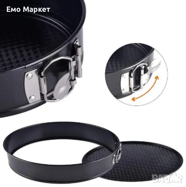 Включва няколко кръгли форми с различен диаметър, всички снабдени с пружинен механизъм за лесно освобождаване на печивата. Изработени от висококачествен метал с незалепващо покритие, те осигуряват равномерно изпичане и лесно почистване.