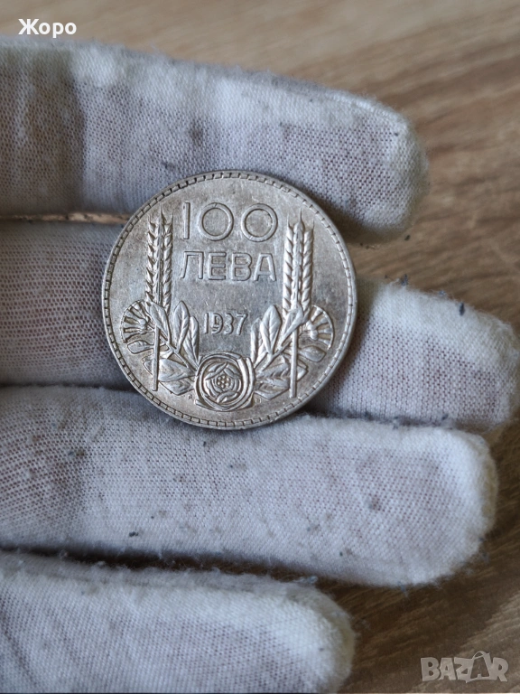 100 лева 1937 година България. Оригинална сребърна монета в отлично състояние.