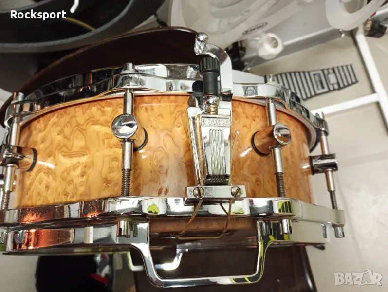 Продавам соло барабан Сонор Форс мейпъл 14"/5". Северно америкамски бял клен, ляти обръчи Хела (вероятно най добрите ползвани от Сонор), екзотик финиш.Всичко оригинално включително и пружините. Немско безкомпромисно качество. Невероятен инструмент!
