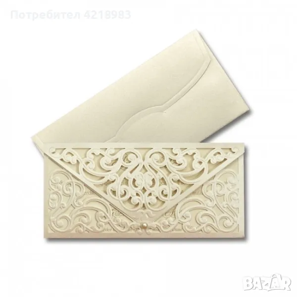 Всеки гост би се възхитил от подобна изчистена, елегантна и изискана покана.ЦЕНА 1.80 евро - ПЕРЛЕНО КАРТОНЧЕ ЗА ТЕКСТА+ ПЕРЛЕН ЛАЗЕРНО ИЗРЯЗАН ПЛИК + ПЕРЛА НА НЕГО + НАПЕЧАТВАНЕ НА ТЕКСТ В ЧЕРЕН ЦВЯТ! НАЛИЧНИ В БЯЛО И ЕКРЮ. Ограничени количества! - 3.50 лв./ 1бр.