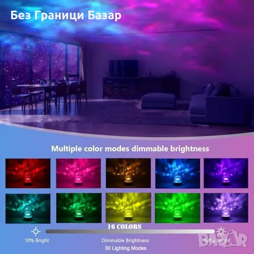 Нов Галактически проектор 360° LED лампа с 16 цвята и 30 режима за стая