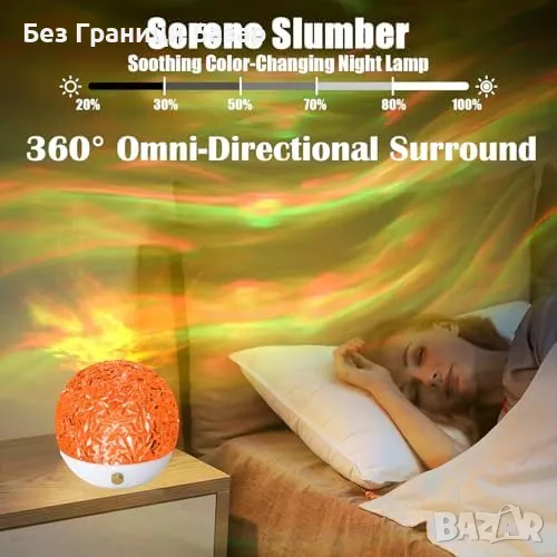 360° проекция на океански вълни и северно сияние – завладяваща атмосфера с ефект на течаща светлина.
