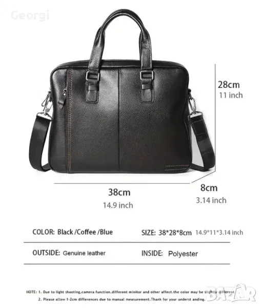 Ежедневни, луксозни, елегантни и кожени бизнес чанти (портфейл за лаптоп 15”) в два модерни цвята!! С мека, лъскава, премиум (Черна и Кафява) естествена кожа, най-висок клас телешка първи слой кожа 5+!